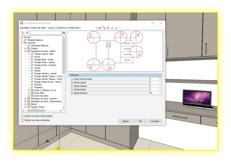 Aplique e configure os descontos necessários no configurador do PROMOB para garantir que em todo projeto os móveis estejam automáticamente com os padrões de medidas e os descontos técnico para garantir a montagem sem problemas.