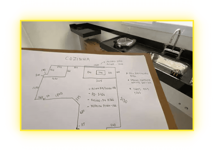 Meça ambientes completos com o olhar técnico da marcenaria e e do design de interiores com técnicas especificas para criação de projetos, garanta que não haverá erros na hora da produção dos móveis.