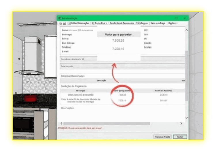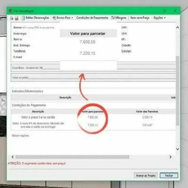 Aprenda cobrar e gere orçamentos de vendas automáticos direto do projeto, gere orçamentos de duas formas, por M² de peça e por custo de materiais. GERE ORÇAMENTOS PRECISOS EM 3 CLIQUES E SURPREENDA OS CLIENTES COM AGILIDADE.